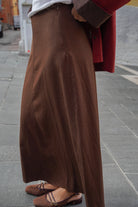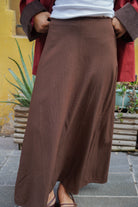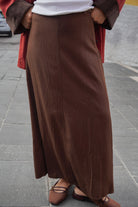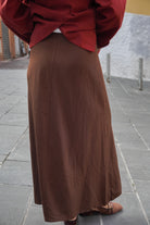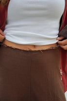 This brown maxi skirt is such a classic staple! We love the frayed detail on the waist. Pair with a cozy sweater or cute top for a fun Fall outing with friends!