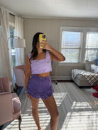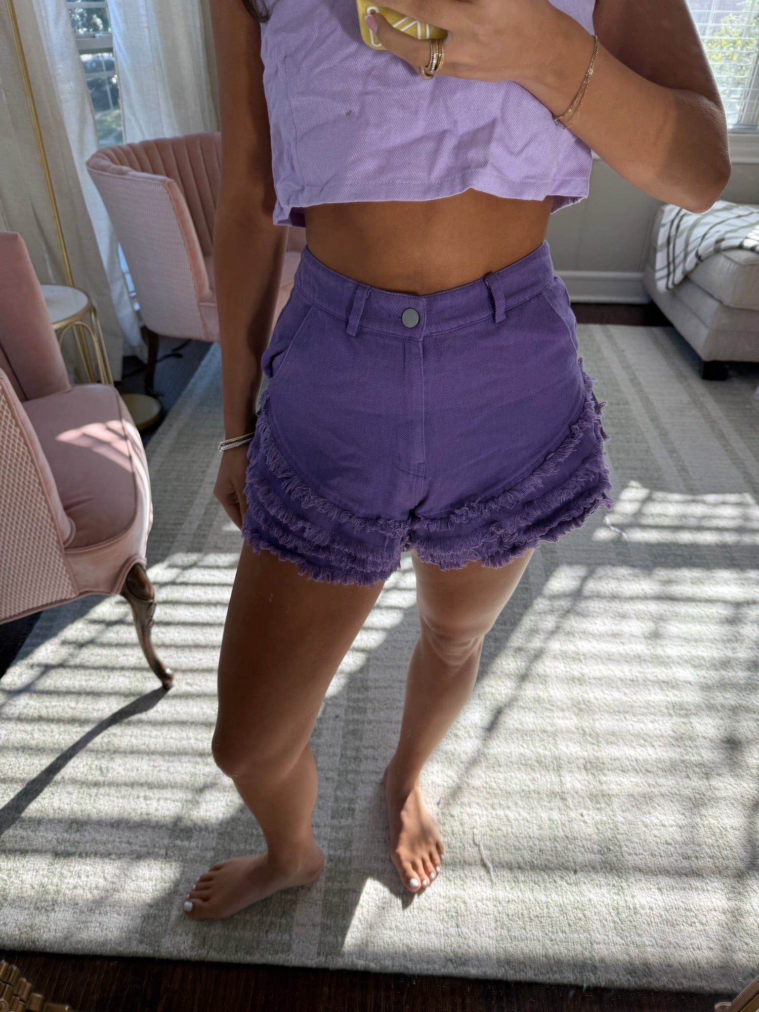 PURPLE RUFFLED DENIM SHORTS- SMALL