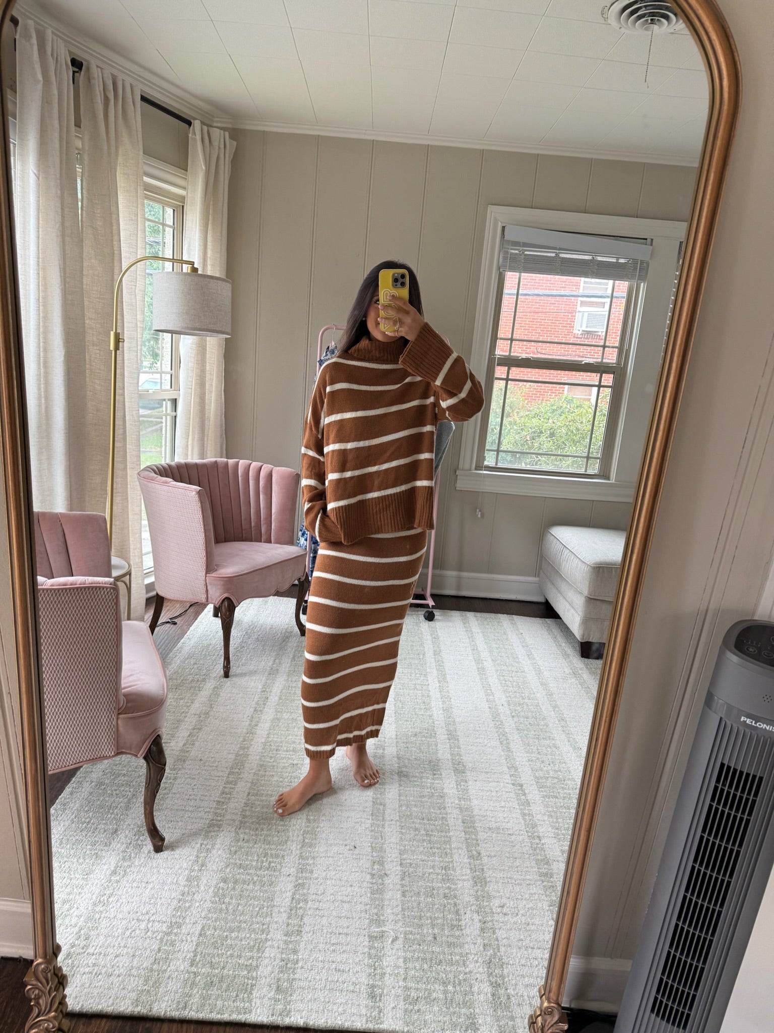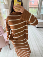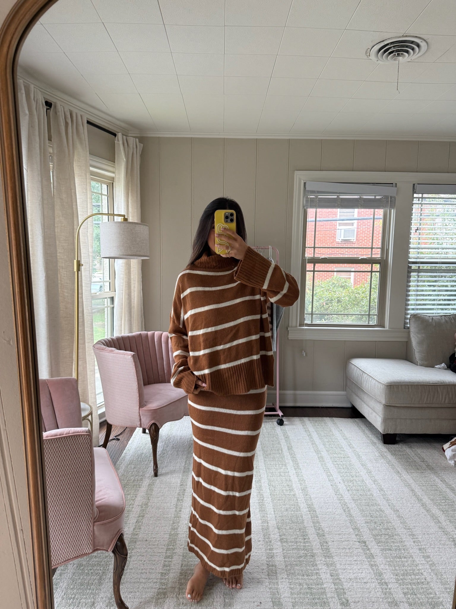 RUST + WHITE STRIPED SWEATER SET- SMALL