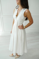 Featuring a pretty scalloped v-neckline with button detailing! This midi dress is perfect for every Spring and Summer occasion. We are obsessed with the touch of scallop!!!