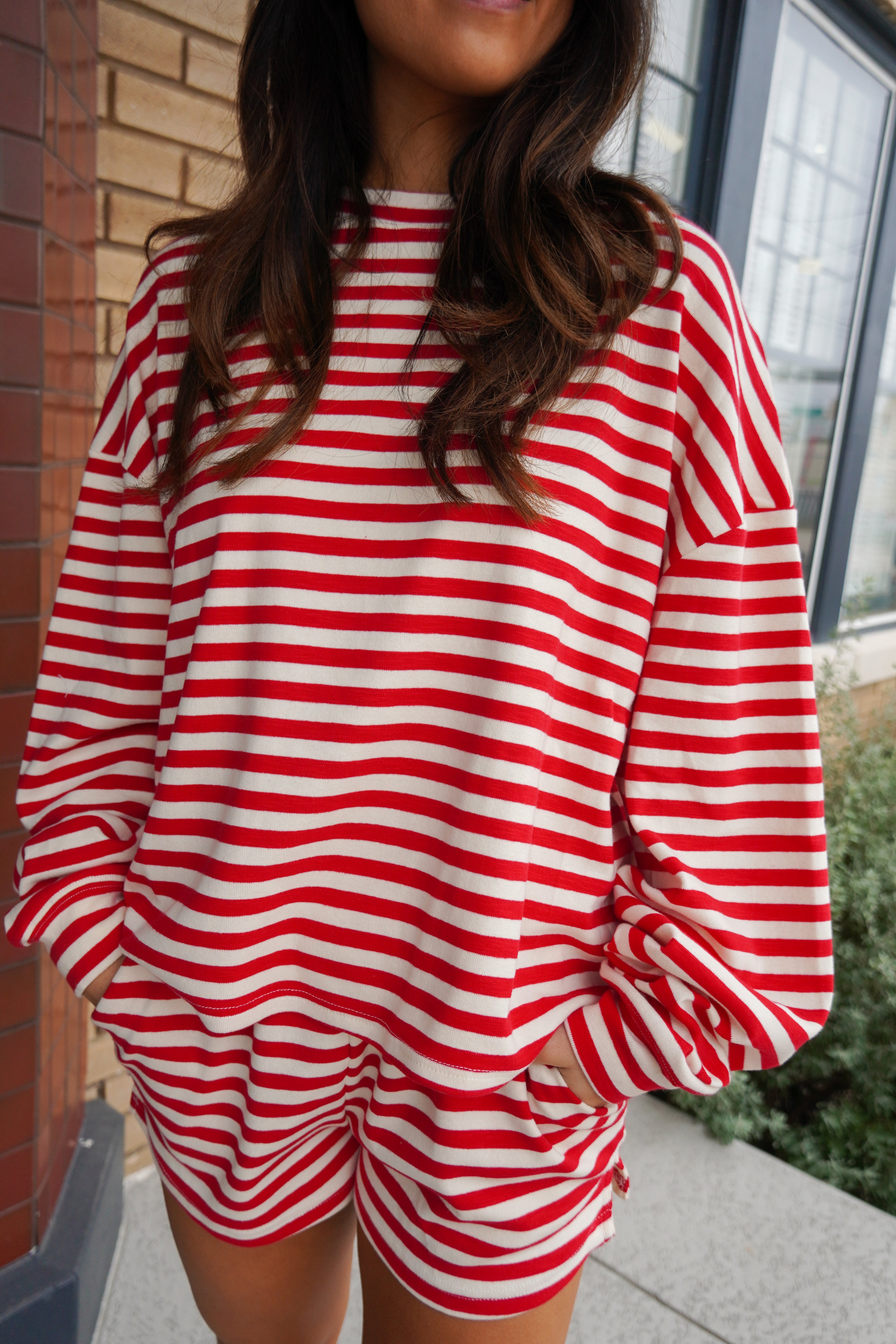 Featuring red and white stripes and the softest fabric ever-- this set is our pick for Christmas morning cozies and will transition perfectly year around as a comfy staple!
