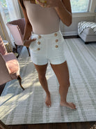 WHITE SHORTS GOLD BUTTONS- EXTRA SMALL